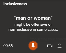 Speech. Microsoft’s Group Transcribe app not only transcribes meetings in real-time but also translates them, enabling non-native speakers to more fully participate in meetings.5 New versions of PowerPoint catch non-inclusive language, including gender and sexuality bias and ethnic slurs in real time based on spoken words (see Figure 1). Siri no longer defaults to a female voice, which can perpetuate sexist stereotypes, and can speak in a variety of accents and languages.6 And while Big Tech companies like Microsoft, Google, Amazon, and Apple are still lagging behind in reducing racial bias in speech recognition technology (with accuracies of 73%, 69%, 69%, and 55% respectively), British speech recognition startup Speechmatics recently announced an accuracy rate of 83% for Black voices, after training its AI model with unlabeled data from social media and podcasts to help it learn different aspects of speech including accent, language, and intonation.7