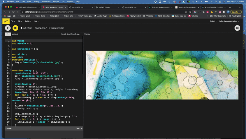 Kseniya: This is very different from the type of art that I usually create or the type of coding that Luke normally does. This was more of a Proof of Concept, when you start with a conceptual idea, but don’t really know where you’re going to end up ...which I love. Luke had quite a bit of learning to do for this. I was experimenting with the effects of different inks and paints in my art studio, anything from painting color washes on canvas to dipping shapes cut out of acetate film into transparent ink. And honestly, at the beginning it was rather messy and a little discouraging. But then eventually we both got a little better at what we were doing and started finding interesting combinations of the physical and digital layers.