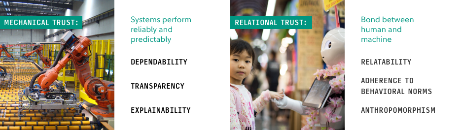 As automated systems advance further into the realm of human capabilities, the mechanisms for developing trust in them become more complex – just like the humans they’re emulating. Efficiency is no longer the overarching goal. Instead, building trust involves two elements: mechanical trust and relational trust (see Figure 1).